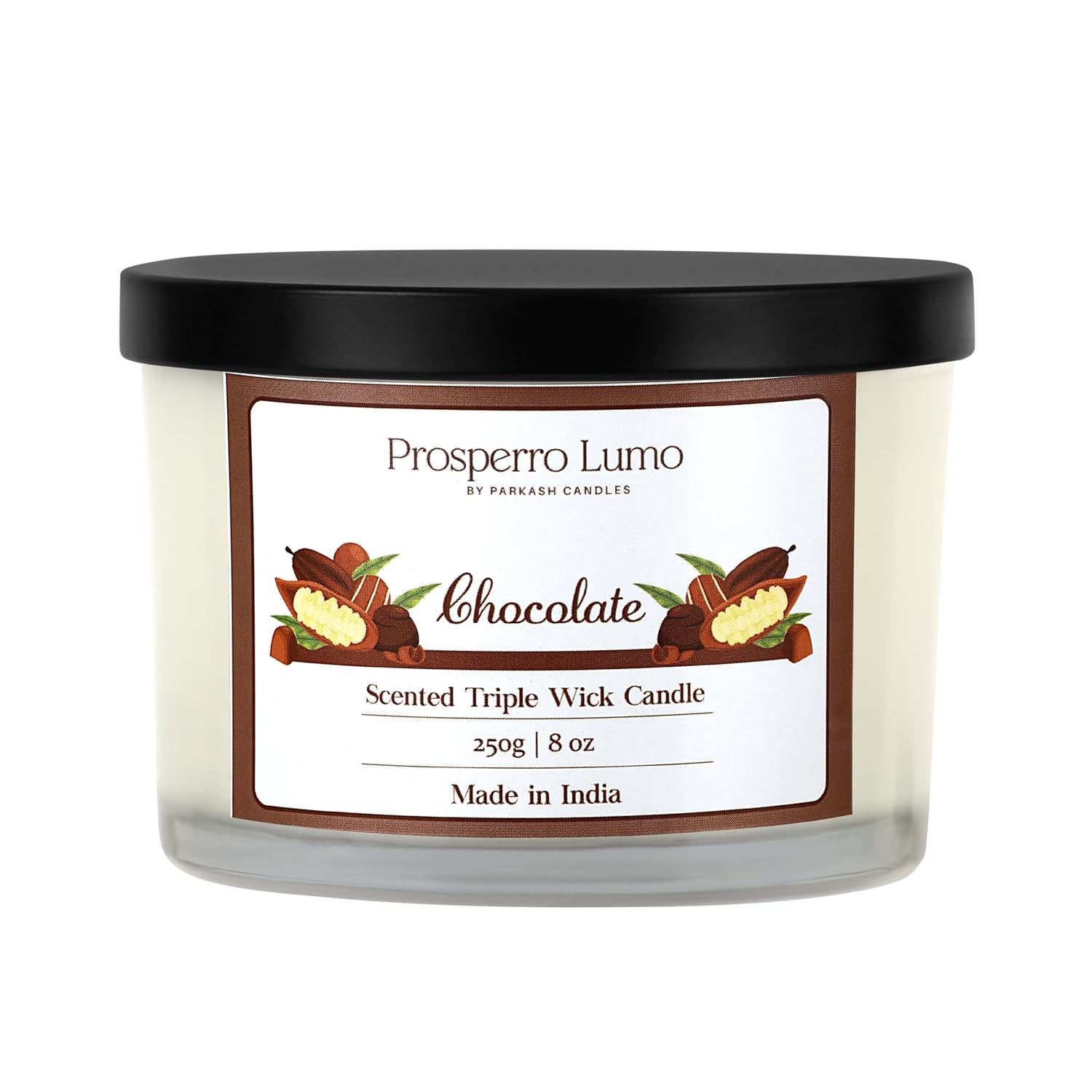 PROSPERRO LUMO by Parkash Candles || 3 Wick Soy Wax Scented Candle | 35 Hours Burn Time | Long Lasting Premium Candles | Ideal for Home Décor, Gifting & Aromatherapy (Chocolate)