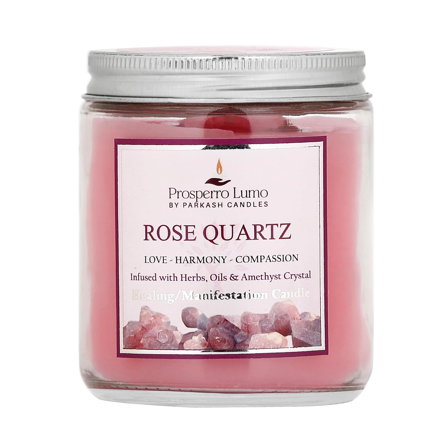 PROSPERRO LUMO by Parkash Candles Crystal Scented Jar Candle โ Infused with Herbs & Healing Crystals | Calmness, Intuition & Clarity | Paraffin Wax | Gift Box | 30+ Hour Burn Time | (Rose Quartz)