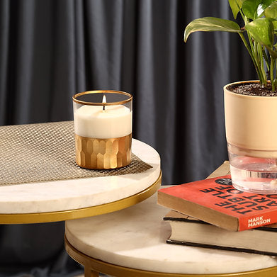 Immerse yourself in the grandeur of the Middle East with our Premium Scented Golden Base 3 Wick Soy Wax Small Jar Candle, featuring the opulent Allure of Dubai. Expertly crafted from high-quality soy wax, this candle is designed with three wicks to provide an even and extended burn, ensuring that the luxurious fragrance envelops your space consistently. The Allure of Dubai scent captures the essence of this vibrant city with an intricate blend of rich saffron, warm amber, and exotic oud, accented by delicate notes of vanilla and spicy nuances. Housed in a sophisticated golden base jar, this candle not only enhances your décor with its elegant and radiant design but also infuses your home with a captivating and transformative aroma. Ideal for creating a refined and inviting atmosphere, this small jar candle adds a touch of elegance to any setting, making it perfect for both daily indulgence and special occasions. Transform your living space into a haven of luxury and mystique with our Allure of Dubai candle, where every flicker brings a touch of splendor and sophistication.