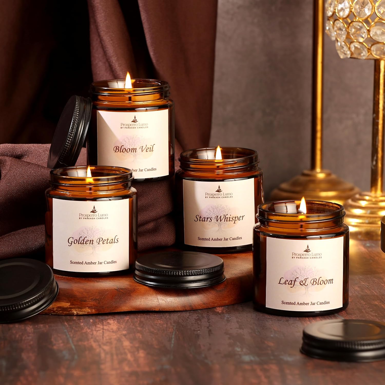 PROSPERRO LUMO by Parkash Candles Amber Jar Scented Candle Gift Set | Pack of 4 (100g Each) | Soy Wax | Long Burning 8–10 Hours | Premium Home & Festive Décor Candles