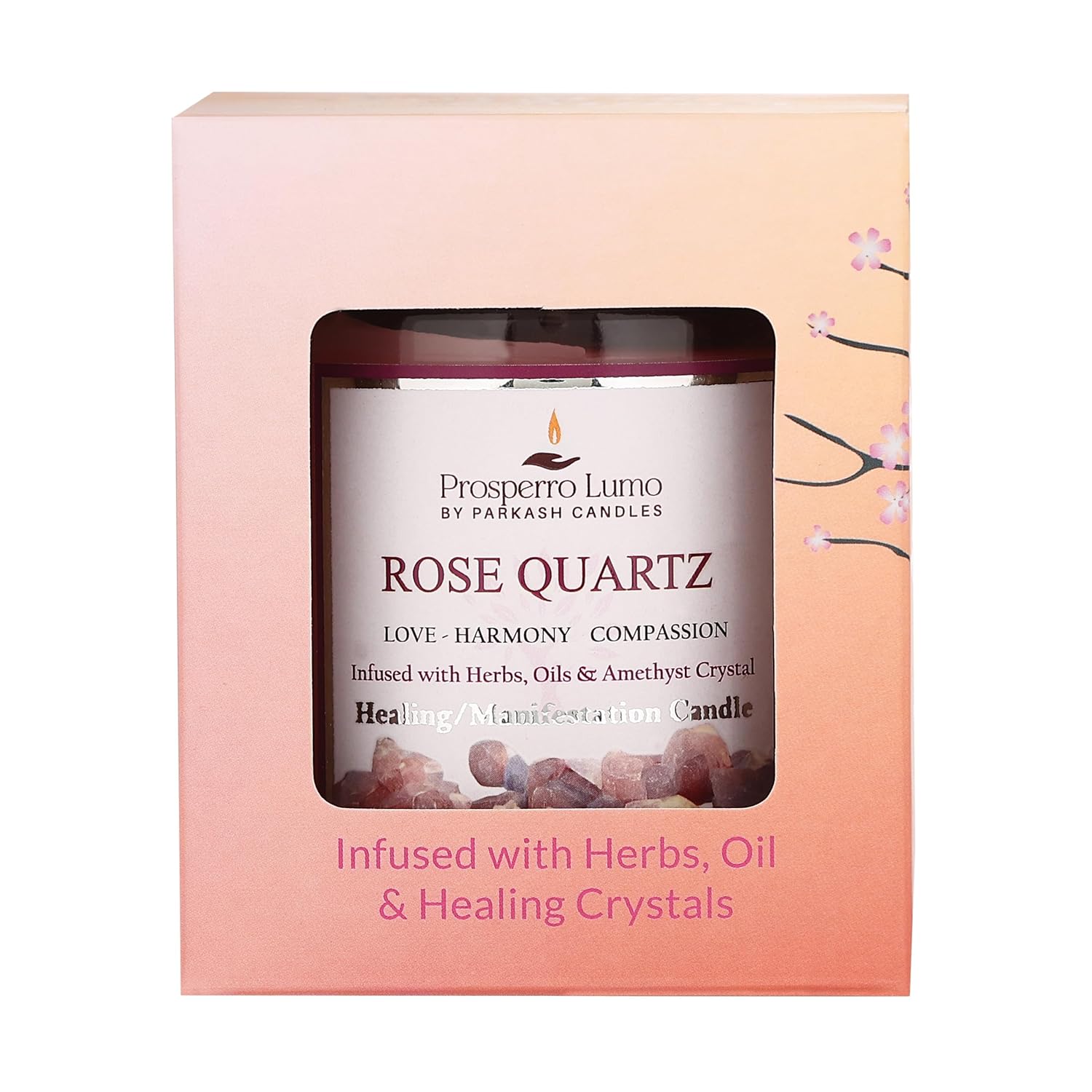 PROSPERRO LUMO by Parkash Candles Crystal Scented Jar Candle โ Infused with Herbs & Healing Crystals | Calmness, Intuition & Clarity | Paraffin Wax | Gift Box | 30+ Hour Burn Time | (Rose Quartz)