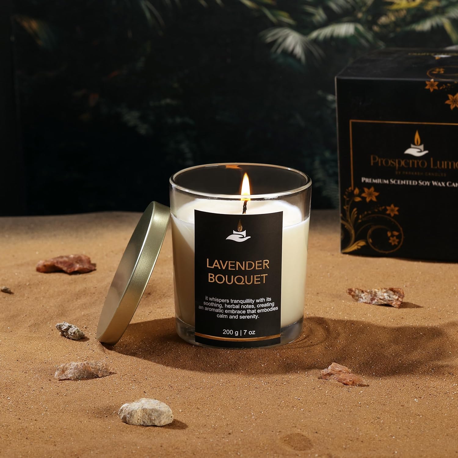 PROSPERRO LUMO by Parkash Candles Premium Scented Soy Wax Candle 200 gm 25-30 Hrs Luxury Aroma Therapy Votive Jar Scented Candles for Home Decor Gift Set (Lavender Bouquet)