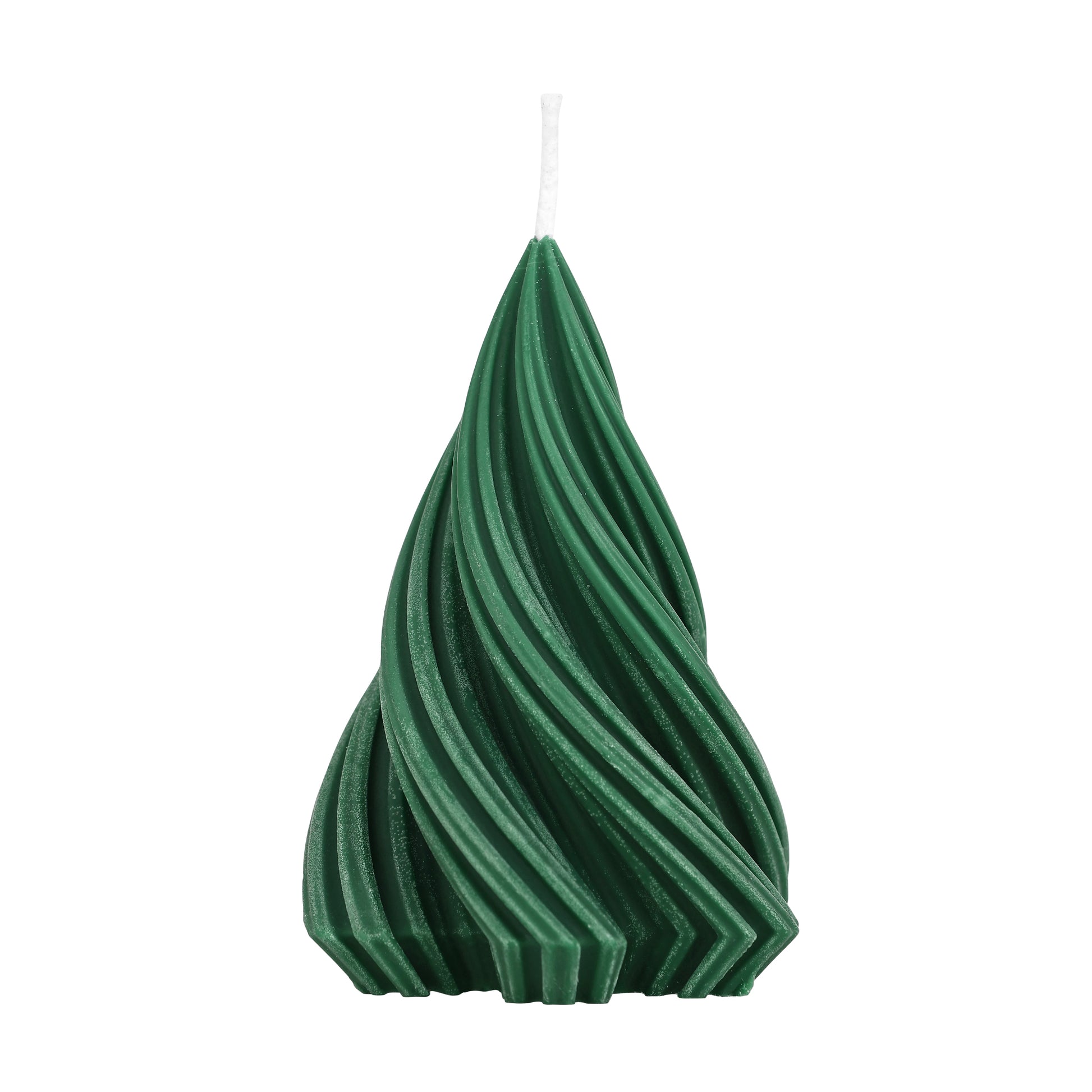 Spiral Pine Christmas Candle || Twisted Evergreen Decorative Candle || Green Fir Swirl Sculpted Candle